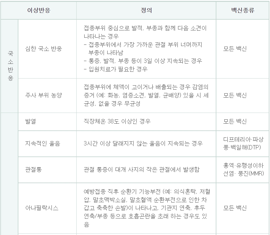 ※ 위와 같은 이상반응 증상 대부분 경증으로 1~2일 내외 소멸