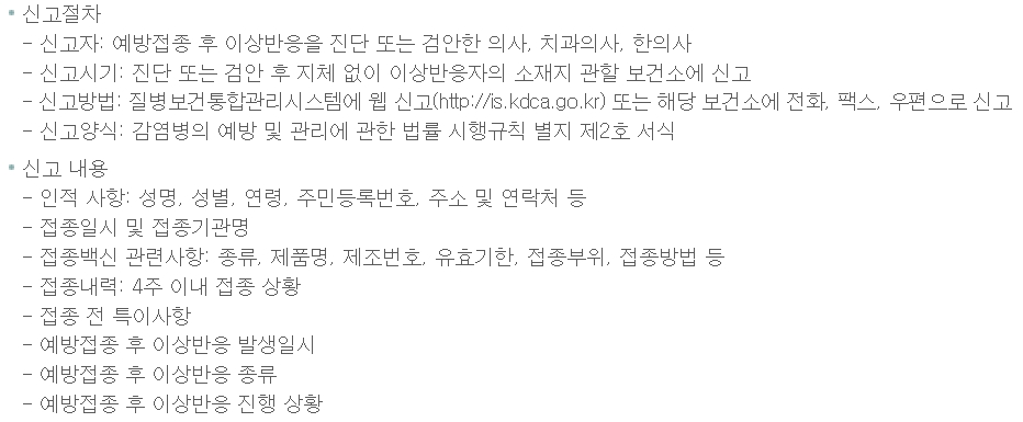 ① 이상반응 진료한 의료기관 의사, 치과의사, 한의사가 진단 후 관할 보건소장에게 신고