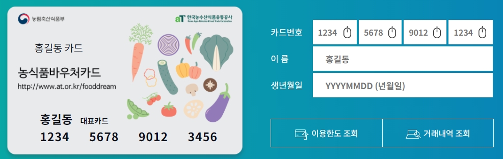 - 농식품바우처 홈페이지에서 이용한도 및 거래내역 간편 조회 가능(👉클릭)