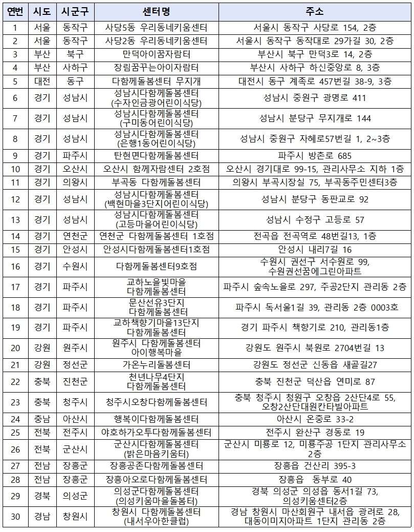 3. 다함께 돌봄센터 운영시간 연장 시범사업 참여 센터