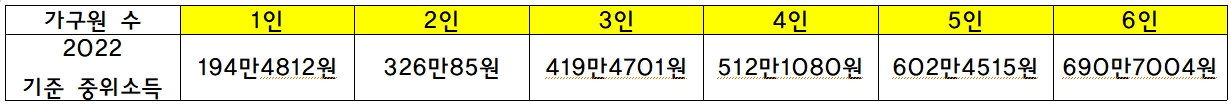③ 가구소득인정액은 기준 중위소득의 100% 이하 이어야 합니다.