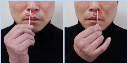 2. 양 콧구멍 안쪽 면에 1.5~2cm 정도 면봉을 대고 10회 정도 동그랗게 문지르세요.