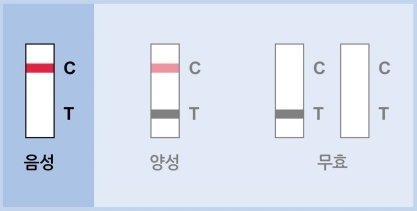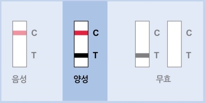 5-3. 검사 결과가 시험선(T)에만 나타나거나 선이 나타나지 않을 경우 재검사가 필요합니다.