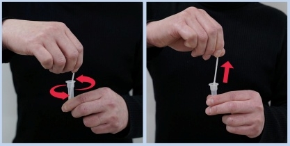 * 제품에 따라서는 면봉을 부러뜨려 용액병에 담으셔도 됩니다.